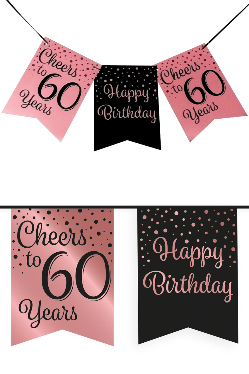Vlaggenlijn Vaandel rose/zwart 60 jaar