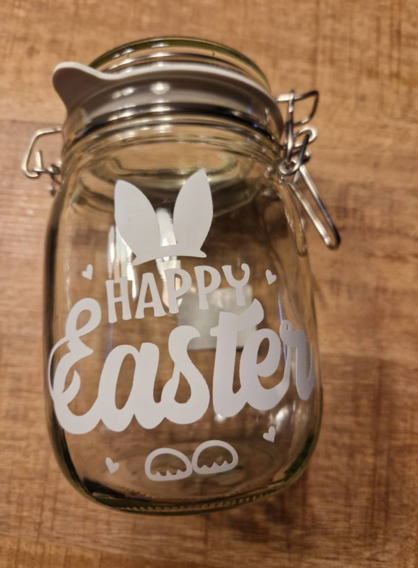 Deze Weckpot voor Pasen is een schattige en veelzijdige toevoeging aan je paasdecoratie. De pot kan gebruikt worden om kleine lekkernijen zoals paaseitjes of koekjes in op te bergen, maar ook als decoratief element op de paastafel. Gevuld met bloemen, eieren of andere paasversieringen, creëer je een feestelijke sfeer. Door het karakteristieke deksel met het sluitmechanisme behoudt de Weckpot niet alleen zijn charmante uitstraling, maar blijft de inhoud ook vers. Je kunt de pot bovendien personaliseren met een naam of paasdesign, waardoor het een uniek en persoonlijk cadeau wordt voor Pasen.
